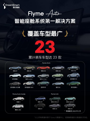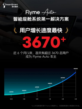 凭借安全可靠、个性好用、无界互联等特点,Flyme Auto 已经接入吉利、领克、银河等多个品牌的 23 款车型,新增用户数连续 6 个月位列行业第一,搭载车型总销量达到 91 万辆,预计今年上半年将突破百万。