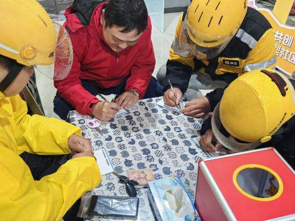 本次活动设置趣味问答环节,围绕“电动车骑行规范”“恶劣天气避险”等实用内容进行答题,外卖小哥们积极参与,通过答题赢取防水手机袋、可重复使用雨衣等实用物资,在互动中强化安全出行意识。活动现场学习氛围浓厚,骑手们纷纷表示不仅学到了更多的交通安全知识,还获得了非常实用的防护物资。