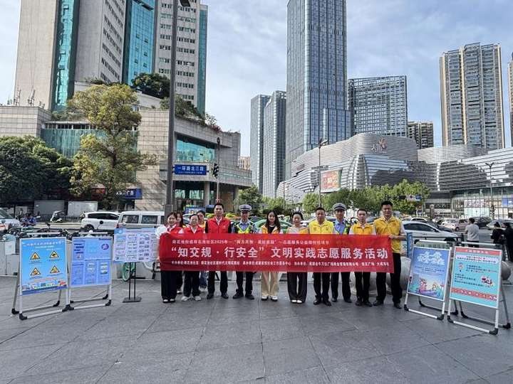 为积极推动 “金小志” 志愿服务 “十百千” 三年行动计划,增强社区居民道路交通安全意识,弘扬志愿服务精神,营造文明出行的良好社区氛围,2025 年 4 月 30 日上午,荷花池社区携手荷花池社区新时代文明实践站、成都家悦社会工作服务中心、成都金牛万达广场商业管理有限公司、宏正广场、大成市场等热心企业,在荷花池辖区内成功举办了 “知交规・行安全”文明实践志愿服务活动。