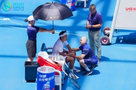 中心球场首场比赛,中国球员特日格乐在与伊利亚·西马金(Ilia Simakin)战至5-7/3-3时由于左肘伤势退赛,遗憾止步首轮,随后他也选择退出了双打项目。特日格乐/崔杰的签位由吴东霖/克里斯蒂安·郎莫(Christian Langmo)替补。