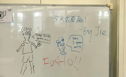 赛前,崔杰在球员健身房画了一幅有趣的自画像,并配文“今天我要赢!”为自己鼓劲,而他最终也如愿以偿旗开得胜。