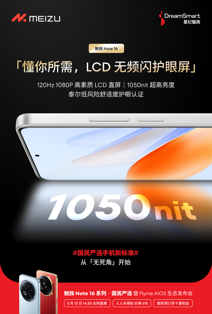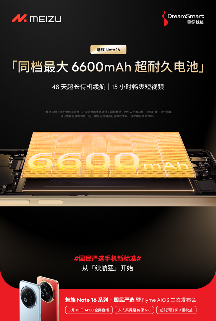 2025年,恰逢魅族手机 16 周年,Note 16 系列战神归来,再次以极致品质打造国民严选手机新标杆。目前,魅族 Note 16 系列预订已开启,全系享国补, 人人买得起,价保 618!在魅族商城,京东、天猫、抖音、快手、拼多多等官方旗舰店及线下零售店参加“超前订”并购买新机,即可享抽“星纪魅族 AI 全家桶”、365 天只换不修、以旧换新专属补贴、耳机礼赠、抽新机免单等 9 重福利。