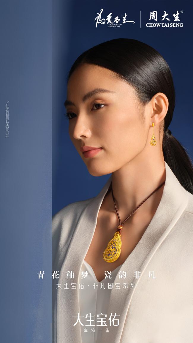 大生宝佑·非凡国宝系列设计灵感来自《国家宝藏》栏目展演文物——各种釉彩大瓶。采用青花珐琅工艺,高度还原各种釉彩大瓶的青花缠枝如意纹样,彰显国风雅韵与现代工艺的完美交融。青花釉彩簇拥金葫芦,镂空工艺勾勒局部细节,邂逅东方雅韵,佩戴于母亲身上尽显优雅从容。还巧妙融合点钻工艺,在葫芦四周围镶钻石,宛如晨露点缀璀璨夺目,点亮精致人生。此外还象征着福中有福,送给母亲更添福泽安康。