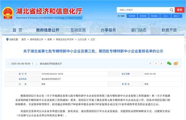 5月8日,湖北省经济和信息化厅正式发布2025年度湖北省“专精特新”中小企业认定名单,武汉滴水智能科技有限公司子公司,帝舍智能科技(武汉)有限公司,凭借其行业领先的智能清洁技术研发能力、精细化产品布局及高速增长的市场表现成功入选。