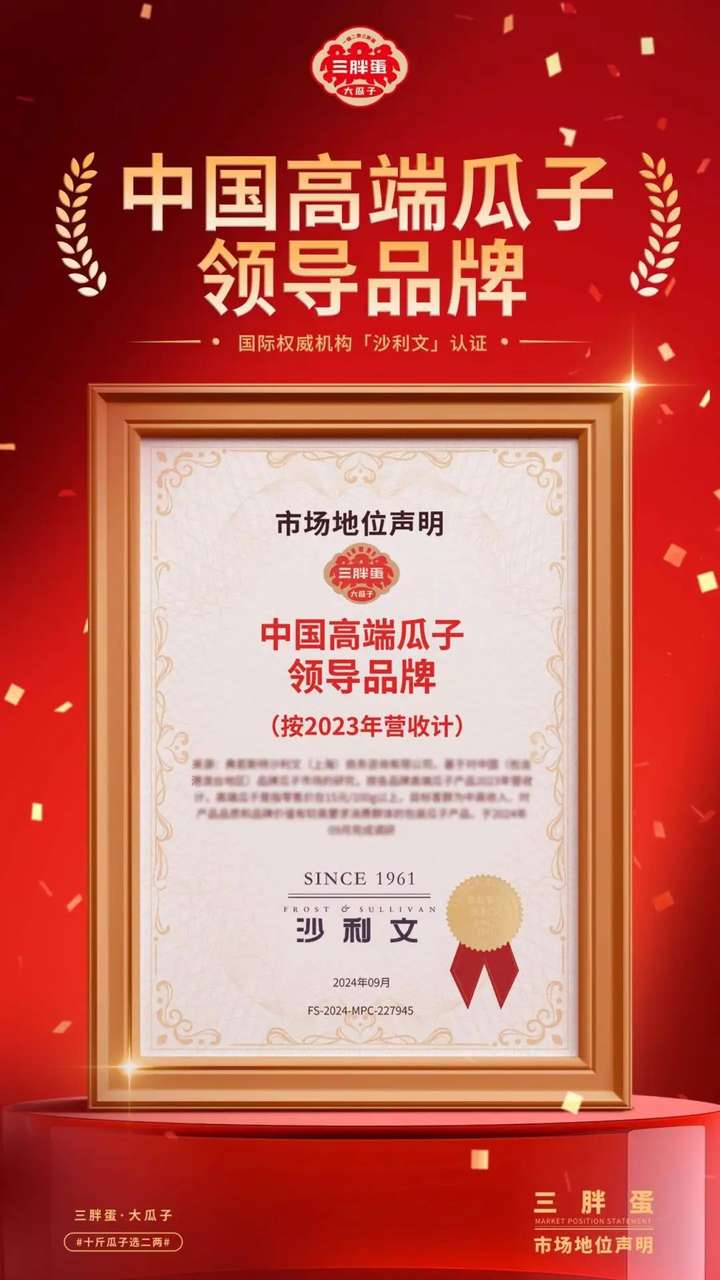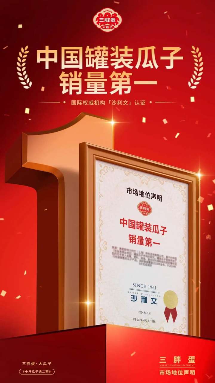 连续11年高端瓜子销量第一、好评率超99%,三胖蛋做到了业内公认的“七个领先”:品类、销量、专业度、产业模式、智能制造、口碑、社会价值样样拔尖。
