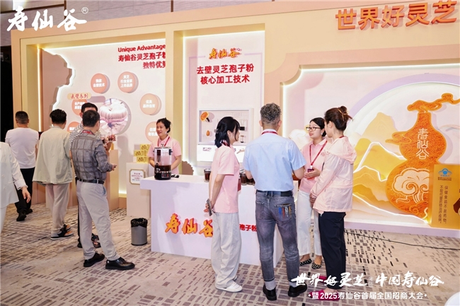 启动仪式:企业高层与客户代表共同按下“灵芝图腾”启动装置,象征“寿仙谷全国招商”的正式启动。