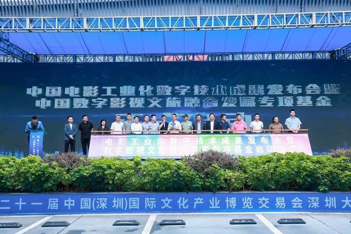 开幕式最后迎来了本届文博会大视界产业园分会场的重中之重。那就是“中国电影工业化数字技术成果发布暨数字影视文旅融合发展专项基金”的启动仪式。这两项重要内容的发布将为中国传统影视制作行业注入全新的动力,势必为该行业带来革命性的重大突破,是一段载入史册的光辉记忆。项目研发及发起单位负责人大视界集团董事长吴啸与该项目总顾问国家电影局原常务副局长、中国电影集团董事长杨步亭,国际著名动作片导演马中轩,联合发起与研发单位工信部工业文化中心副主任孙星,中科院高性能计算中心研究员赵学良博士,湖南广播影视集团(湖南电视台)党委委员、湖南潇湘电影集团党委书记、董事长谷良,南方都市报社党委副书记、总经理陈文定,中国国际文化艺术中心副主任、中国电影基金会电影工业技术创新发展专项基金总监、南方电影工程技术研究院副院长冯学东,南方电影工程技术研究院副院长汪廷等领导一起上台参与了该启动仪式。