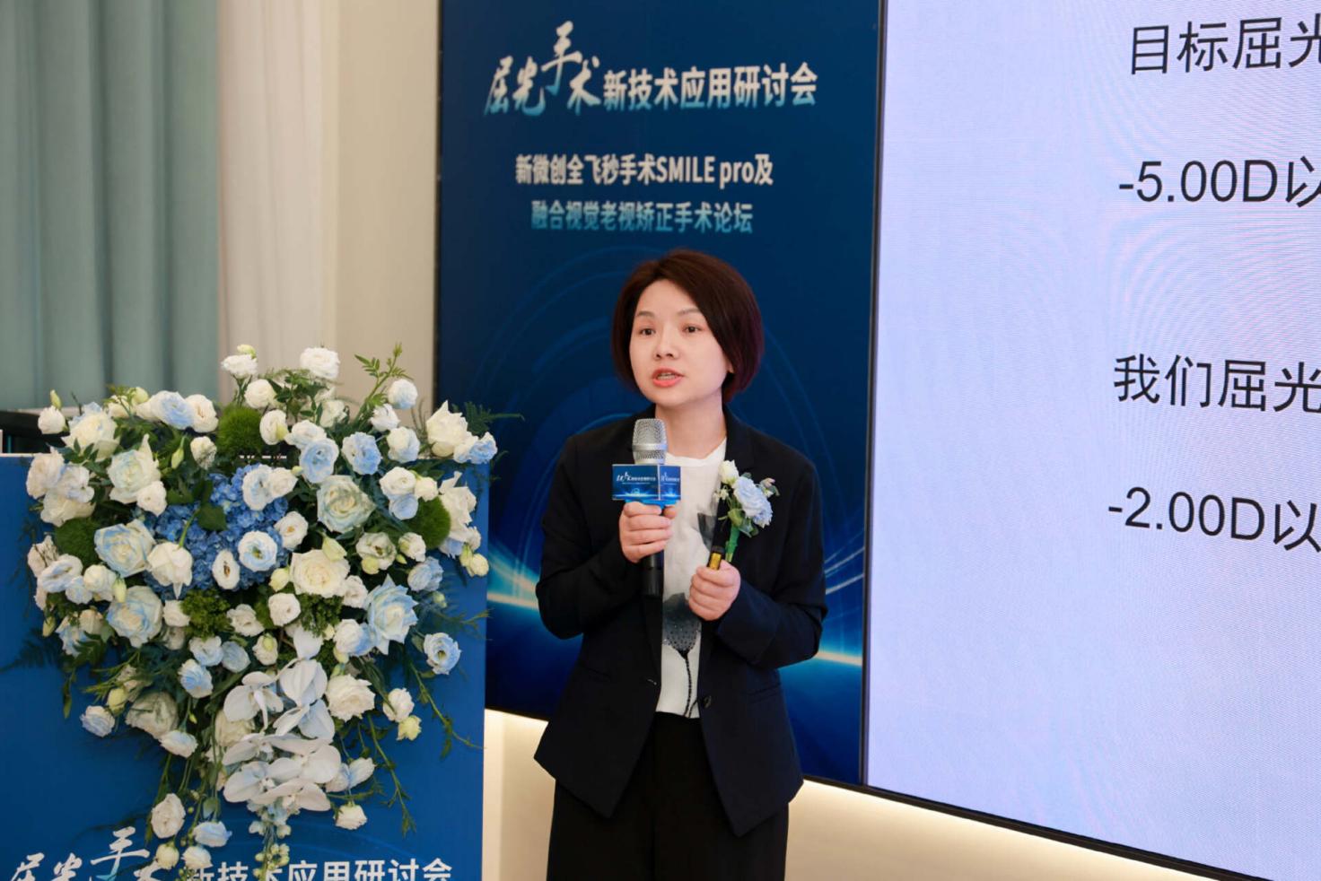 蔡司屈光全国患教支持经理潘泽女士在致辞中谈及与成都悦瞳眼科医院的合作,她提到:“从全飞秒SMILE、微创全飞秒精准4.0到新微创手术SMILEpro,蔡司一直引领着全球屈光技术的发展方向,为行业树立新的标杆。成都悦瞳眼科医院凭借其专业精湛的眼科医疗服务水平,在四川地区迅速崭露头角。此次双方达成合作,正是源于彼此都相信科技赋能、以患者为中心的共同理念,期待未来以新微创手术SMILEpro为契机,一起推动屈光手术迈向更加智能、更加精准的新阶段。”