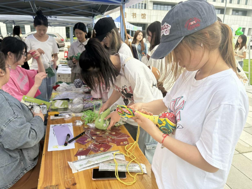 艾草锤制作区同样热火朝天。空气中飘散着艾草特有的清香,同学们沉浸于选材、填充、捆扎的全过程,亲手制作着属于自己的养生小锤。大家互相交流着技巧,讨论着艾草的功效,当一个个小巧玲珑、散发着草药香的艾草锤在手中成型时,成就感油然而生。这沉浸式的体验,让传统工艺不再遥远,加深了大家对养生文化的理解。