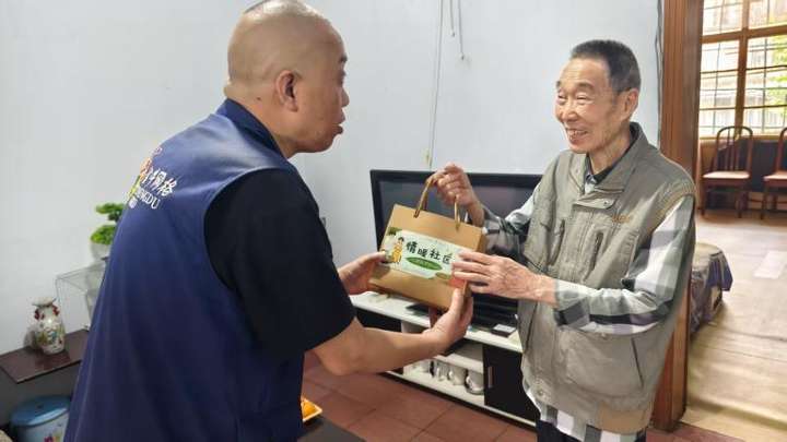 包粽子环节结束后,社区工作人员与居民们将包好的粽子进行分装,在网格员的带领下,逐一走访慰问社区高龄老人。每到一户,工作人员都与老人们亲切交谈,询问他们的生活状况和身体情况,送上饱含邻里关爱的粽子,让老人们感受到社区大家庭的温暖。