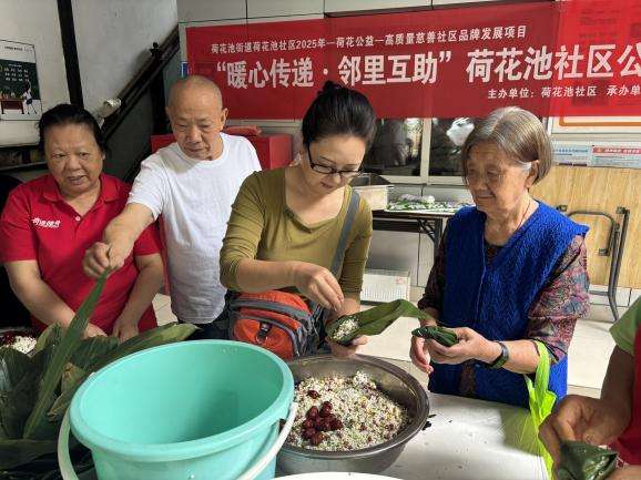 本次活动成功打造了邻里互动平台,增强了居民间的沟通与协作,提升了社区归属感,激发了居民参与社区事务的积极性,培育了 “邻里互助” 的社区文化,同时通过包粽子和送粽子活动,促进了代际交流与经验分享,让关怀在社区中传递。居民纷纷表示,通过活动感受到了社区的关怀,期待未来有更多类似的互动机会。未来,荷花池社区将继续开展多元文化活动,推动社区精神文明建设,提升居民的归属感与幸福感,让社区成为 “邻里相亲、守望相助” 的温暖家园!