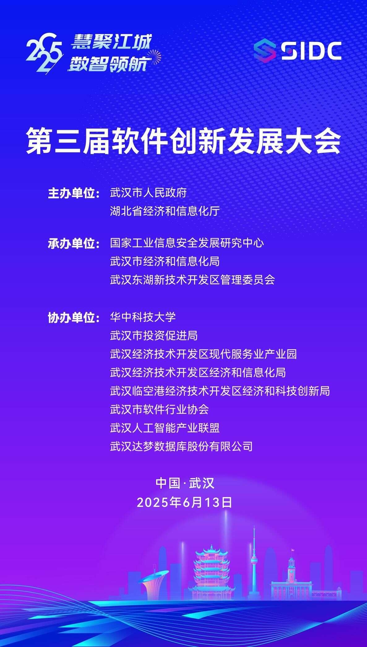 第三届软件创新发展大会不仅是行业交流的平台,更是推动数字经济与实体经济深度融合的重要契机。我们诚邀相关软件行业创业者、技术爱好者以及相关专业人士齐赴武汉,共同探索软件产业发展的新路径,携手绘制中国软件产业的新蓝图。2025年6月,江城相约!让我们以软件为舟、以数智为帆,共赴产业变革新征程!