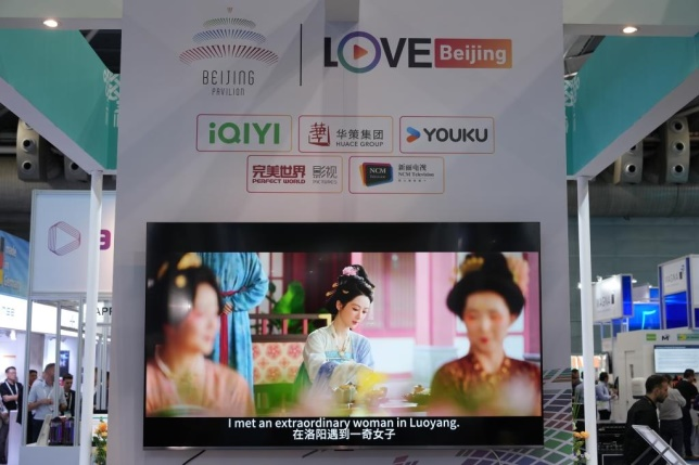 超高清节目展示区内,华策影视、优酷、长信传媒等视听企业联手推出优秀京产影视剧。《国色芳华》《闪耀吧!大运河》《嘘,国王在冬眠》《狮城山海》《吃饭跑步和恋爱》《欢迎来到麦乐村》《与君》等剧的中国的东方叙事活力,引来大批观众驻足,“同心•同源”,更是让大家“共情·共识”。这些作品以“影视+文旅+科技”的形式,展现了北京优秀影视剧和超高清视听节目制作能力。