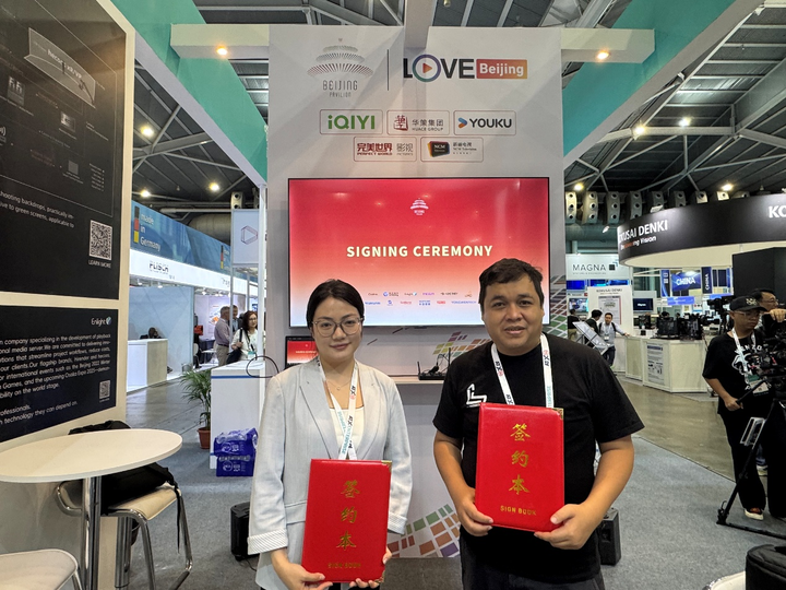 在中新建交35周年之际首秀新加坡广播电视展,更是让参展企业精心谋划,通过“展示+推介+洽谈”的多元呈现交流方式,在相会老友、结识新朋的同时,签订了不少国际订单。3天展期内,有5家企业在展台举办了签约仪式,收获满满。