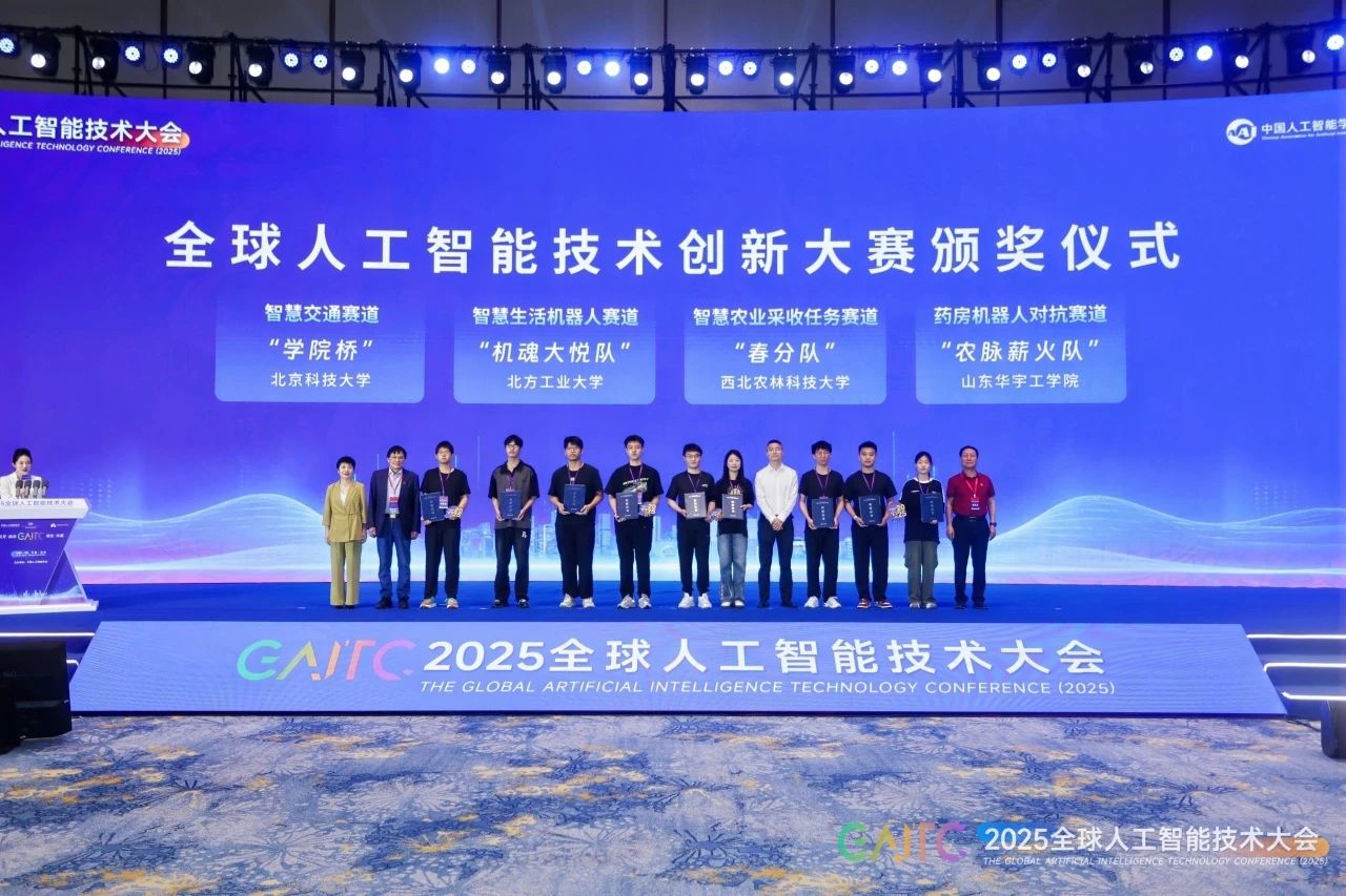余杭区科技局局长钟燕女士为亚军团队颁奖,CAAI副秘书长杨易教授、未来科技城人才和金融服务中心副主任王冠军先生为季军团队颁奖,浙江工业大学白琮教授为一等奖团队颁奖。6月7日2025全球人工智能技术大会开幕式上,国务院参事、清华大学信息科学技术学院院长等职务集于一身的中国人工智能学会理事长戴琼海,中国人工智能学会副理事长何友,浙江省委组织部人才办主任孟德玖,余杭区人大常委会党组书记、主任朱红丹共同为冠军团队颁奖,此举有力彰显了赛事与国际顶级会议的深度联动价值。