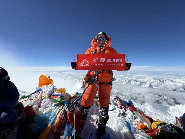 图:北京时间2025.05.24 10:31,中国首位无氧登峰14座8000米以上雪山攀登者,何静 成功登顶