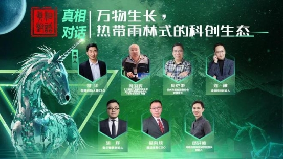 真相对话1 围绕“万物生长,热带雨林式的科创生态”展开。微链创始人兼 CEO 蔡华主持,杭州市创业投资协会轮值会长周恺秉、凌迪科技创始人刘郴、鲁尔物联创始人胡辉、德适生物 COO 翁资欣、守敬应用科技研究院院长兼创始人邱洪波各抒己见。