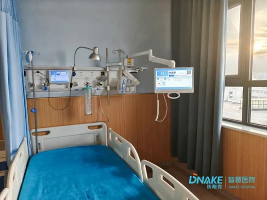 在病房内,院方代表详细展示了狄耐克基于开源鸿蒙系统的智能呼叫和智能床旁交互系统、生命体征监测系统。开源鸿蒙医护对讲系统搭建起医护患实时沟通桥梁,实现患者与护士间高效的信息传递。智能床旁交互系统为患者提供在床旁进行信息查询、护理反馈等交互体验,让护理服务更贴近、更便捷。同时,护士与医生可通过权限认证,在床旁随时查阅患者信息、执行医嘱,大幅提升护理与诊疗效率。生命体征采集系统,借助毫米波雷达监测技术,自动、精准采集体温、血压等生命体征数据,为诊疗提供实时依据 。