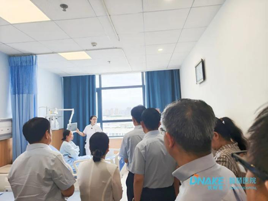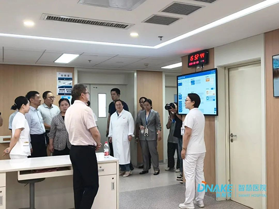 在护士站区域,院方代表为参会领导嘉宾详细介绍了狄耐克护理白板交互系统,将多系统数据整合显示,包含患者总数及出入院情况、患者列表、高危管理、护理信息等信息,便于医护人员及时查询。同时,与开源鸿蒙医护对讲系统等系统打通,实现呼叫报警、输液报警、体征异常报警,全面提升护理工作效率。