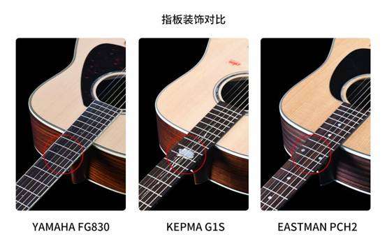 ①YAMAHA和Eastman都采用了简洁的圆点装饰,其中YAMAHA采用的是蓝鲍鱼贝,Eastman的珍珠圆点光泽度更好;