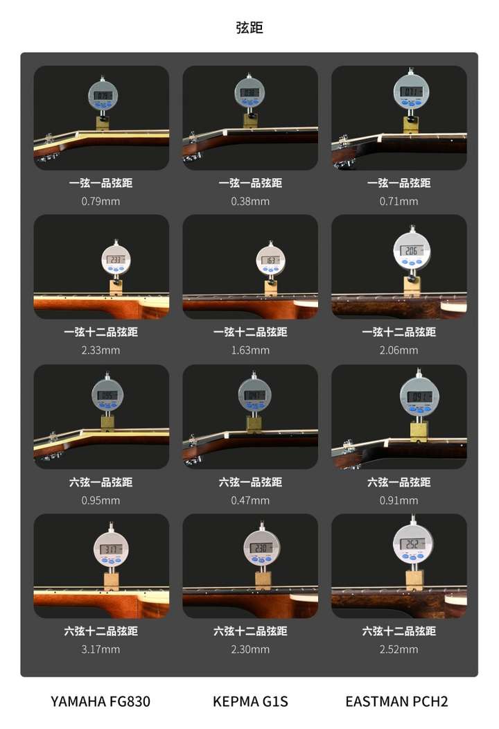 (以下数据基于单把吉他人工测量,不做绝对评估,请自行参考。)