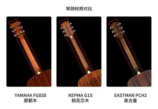 在琴颈材质的选择上三家差异则比较明显: