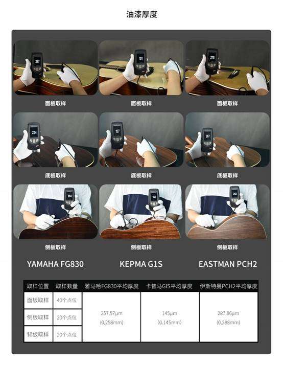 ①YAMAHA FG830和Eastman PCH2均为人工打磨,导致部分产品会出现左右不对称、棱角缺失、线条变形等问题;