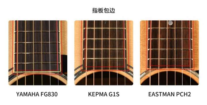 ②Eastman PCH2为节省成本直接放弃了包边处理,这也直接导致品丝暴露,对弹奏手感影响较大;