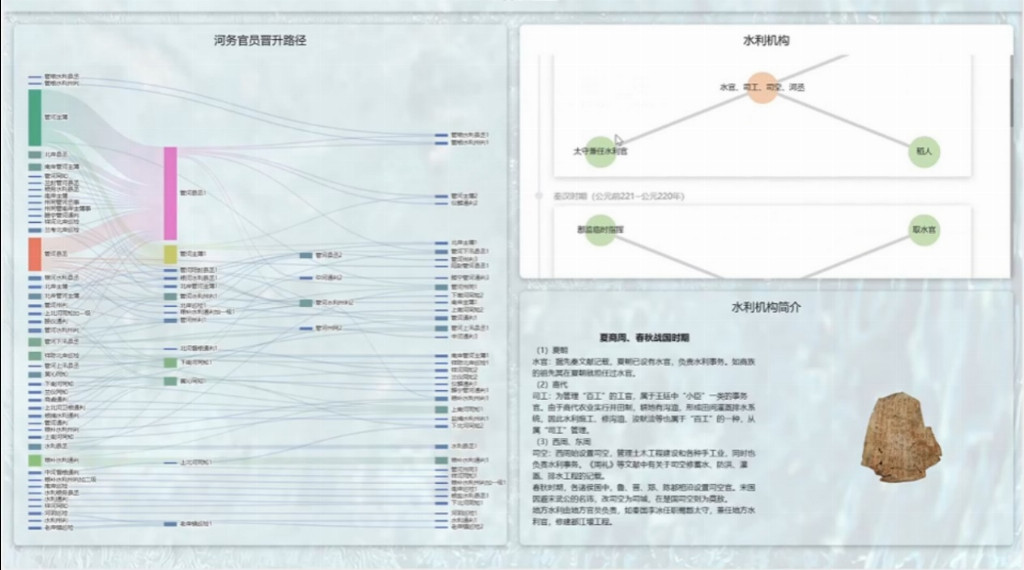 基于这些珍贵的数据资料,团队进一步运用知识图谱技术,梳理出黄河水文化中水利工程、历史事件、文化人物、非遗技艺等要素之间的关联,构建起庞大而复杂的知识网络。同时,开发出智能问答系统与可视化展示平台,用户不仅可以通过自然语言提问,获取关于黄河水文化的精准解答,还能通过动态地图、3D 模型、时间轴等可视化形式,直观感受黄河水文化的千年变迁与深厚底蕴。
