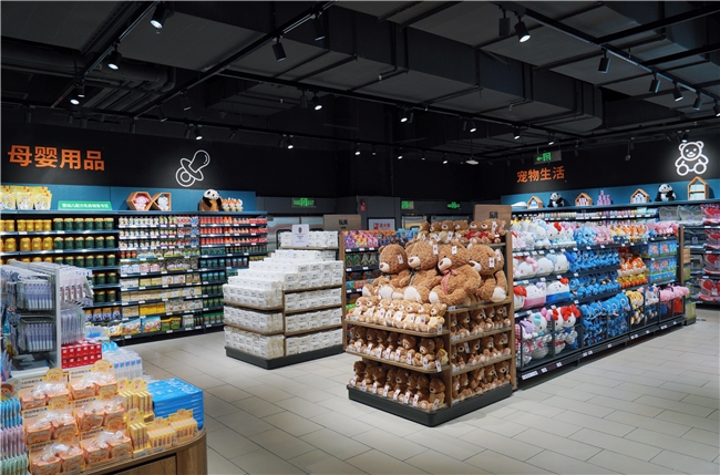 吴江吾悦广场店摒弃传统“强制动线”,让顾客购物路径更自由流畅。新增多个自助收银台,有效缩短排队时间。货架高度统一降低至1.6米,视野开阔通透,商品陈列一目了然。