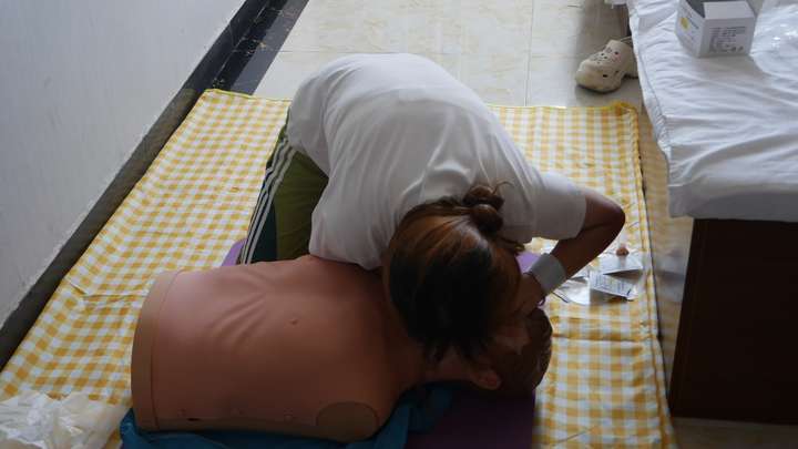 为了向青少年清晰示范专业急救流程,提升实践团队成员心肺复苏(CPR)实操水平,筑牢防溺水安全保障网,特开展此次 CPR 实战演练 。成员跪在地毯上,掌根精准按压模拟人偶胸骨,汗珠滑落却目光如炬,俯身吹气,动作一丝不苟,“向模型吹气,是在模拟争夺生命的战役”。双人CPR演练中,两位成员的默契尤为动人。两人动作无缝衔接,眼神交汇即完成“生命接力”。通过演练,团队掌握 CPR 技能,成员间默契成为应对突发的有力支撑,这些 “地毯上的必修课”,为后续防溺水教育筑牢实操基础,助力守护生命安全 。