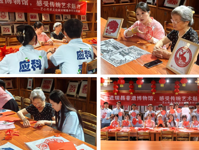 当日下午,实践团成员们开启了“三下乡”剪纸文化调研之旅,团队队长冷雨晨、实践组组长叶鑫飞带领组员深入瑞昌百花村、调研组组长黄相文、赵婷带领组员前往港下谈、宣传组组长李金龙、汪茹馨带领组员前往宝山村等多个村落进行调研,探寻指尖艺术的传承脉络。从胡菊花老师的热爱坚守,到夏钰瑶同学的青春接力,再到陈玉姣奶奶的岁月沉淀,瑞昌村落的剪纸调研,让我们看到非遗传承的多元模样。它扎根民俗、拥抱青春、跨越代际,是艺术,更是连接过去与未来的文化纽带。