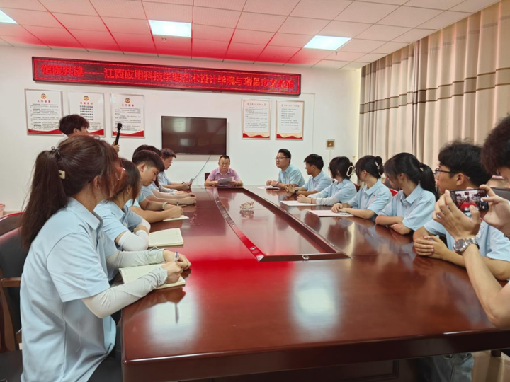 2025年6月30日下午,“馆院共建——江西应用科技学院艺术设计学院与瑞昌文化馆”会议在瑞昌举行。瑞昌市文化馆馆长蔡敏、艺术设计学院团总支书记江政建、团总支副书记曾庆金出席、实践团全员参与,会议由实践团队长冷雨晨主持。