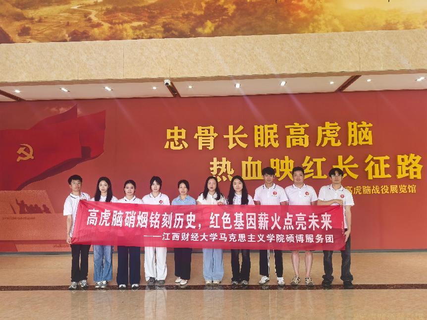 七月的赣鄱大地,红色记忆熠熠生辉。近日,江西财经大学马克思主义学院博硕服务团踏上广昌县高虎脑这片浸染着英雄热血的土地,以一场沉浸式的红色研学之旅,拉开暑期“三下乡”实践活动的序幕。在这里,中央苏区第五次反“围剿”的烽火印记依旧清晰,长征前夕那场关键阻击战的精神密码正等待青年学子们解码。