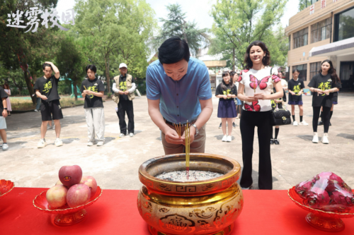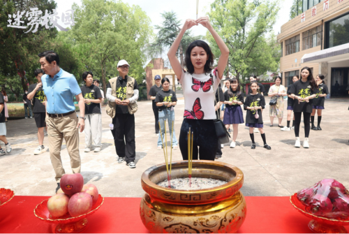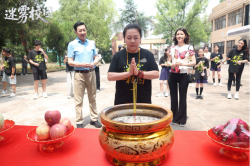 仪式最后,全体主创共同上香祈福,祝愿《迷雾校园》拍摄顺利、收视长虹。作为本部影片的监制阿依古丽老师在致辞中表示:“校园侦探题材在国内尚属新兴领域,期待《迷雾校园》能为行业带来新的突破,成为国产悬疑电影的标杆之作。”