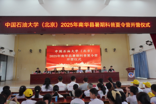 7月8日上午,2025年南华县暑期科普夏令营开营仪式在南华县思源实验学校报告厅举行,校团委书记周学智,南华县副县长张舫瑞,中国石油大学(北京)挂职南华县副县长张自强,中国科协相关负责人、学校科普协会、SPR机器人协会等中国科协重点支持的大学生科技社团指导老师,南华县教体局、思源学校、龙川小学校领导、“小小地质博物馆”相关负责人、科普夏令营营员和学生家长等120余人参加开营仪式。南华县副县长张舫瑞感谢学校将国家级优质科技创新社团资源引入南华,他期待科普活动可以在孩子们心中种下热爱科学的种子,未来成长为建设家乡、贡献国家的力量。校团委书记周学智为夏令营授旗,重点介绍了依托中国科协2025年大学生科技社团支持计划、整合校内优势资源设计的三大特色主题科普活动,未来还将持续在南华县建设科普基地、构建科普生态,。开营仪式后,参会人员共同上了一场“科学家精神”的思政大课,夏令营负责人学生们生动地讲述了科学家们不畏艰难、为国奉献的感人故事,激励夏令营学生努力成为科技报国的实践者、传播者和乡村振兴的筑梦者。