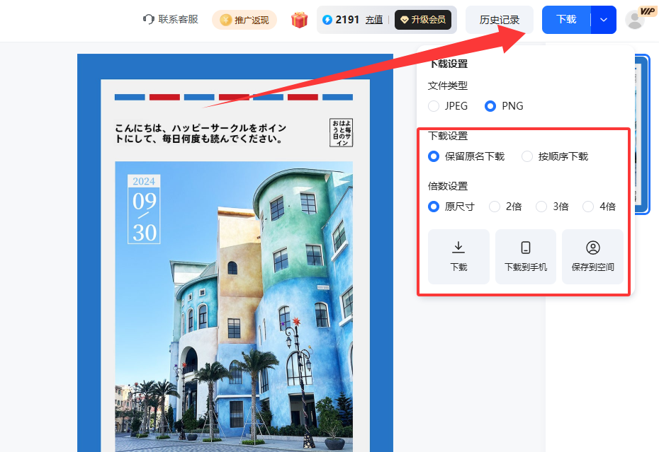 7、保存图片:对效果满意后,可点击右上角【下载】,将翻译后的图片保存至本地设备或我的空间。