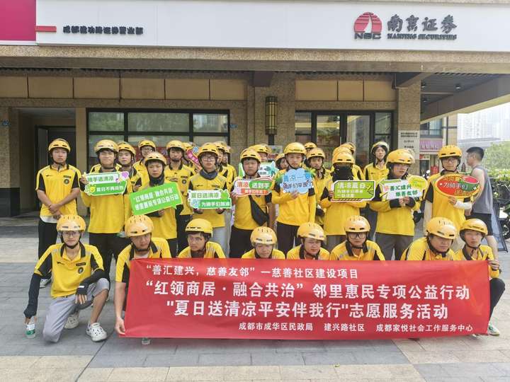 在炎炎夏日,717骑士节之际,一场充满关怀与温暖的志愿服务活动在建兴路社区辖区美团外卖站点(东郊记忆站)拉开帷幕。此次活动由成都市成华区民政局、建兴路社区主办,成都家悦社会工作服务中心承办,以“红领商居·融合共治”邻里惠民专项公益行动为依托,旨在为外卖骑手们送去夏日清凉与节日祝福,同时开启微心愿及需求征集活动。