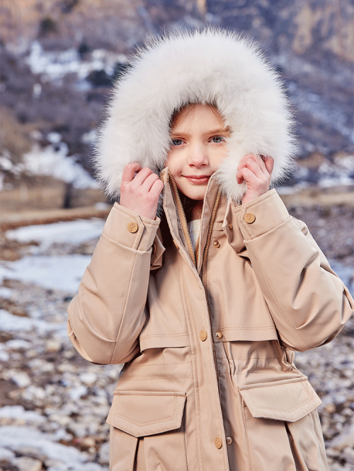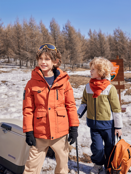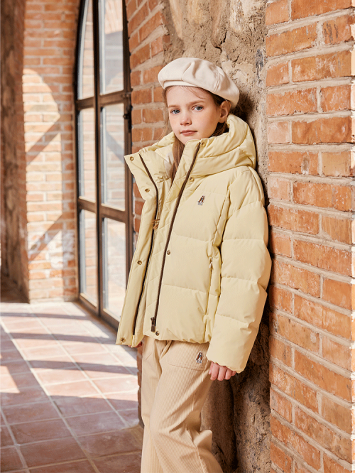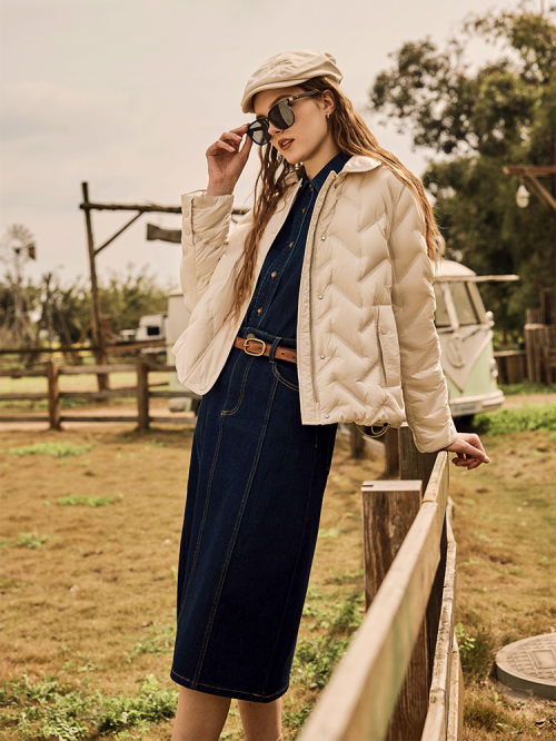 色彩上,以米咖、羊皮驼、奶昔白等大地色系为基调,点缀紫灰、日落橘等温柔亮色,像冬日暖阳般包裹身心;材质则偏爱软糯亲肤的羊毛、羊绒与轻盈保暖的羽绒,让触感的舒适与视觉的温暖同步抵达,细腻融入每一寸面料。