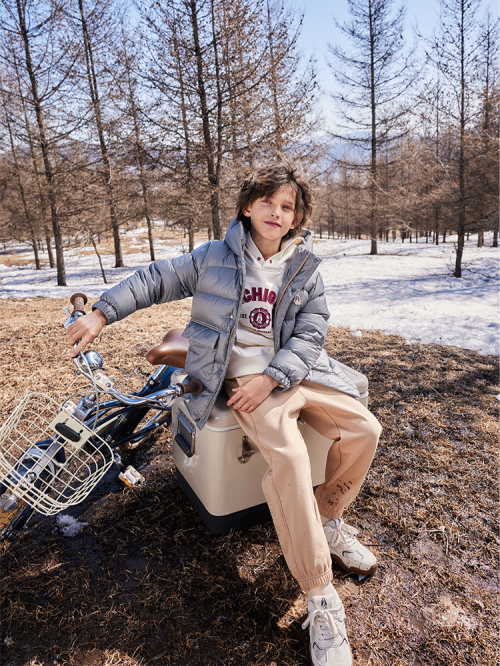童装系列巧妙融合田园牧歌的松弛与英伦复古的雅致。灵感源于大地的自然色系,纹理细节仿佛记录着快乐的印记,传递着无拘无束的自由感。设计聚焦实用舒适与温暖守护,摒弃刻意矫饰,让服装风格成为孩子们自在探索、拥抱爱意的自然延伸。