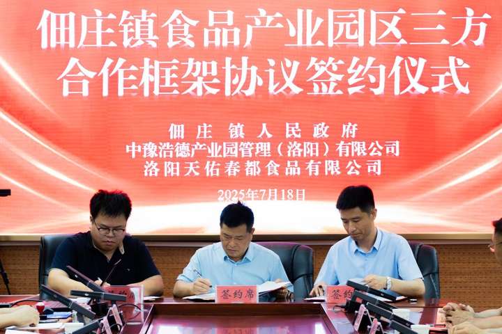 近日,洛阳经济技术开发区佃庄片区食品产业园区招商推介会在佃庄镇顺利召开。洛阳天佑春都食品有限公司(以下简称“春都”)与佃庄镇人民政府、中豫浩德产业园管理(洛阳)有限公司共同签署三方合作框架协议。