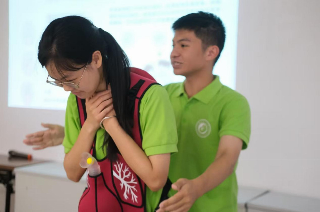 队员们利用人体模型,将CPR的“评估环境、呼救、胸外按压、开放气道、人工呼吸”五大关键步骤逐一拆解,着重强调按压深度、频率的“黄金标准”以及操作的规范性。海姆立克法的“剪刀石头布”定位口诀与冲击动作要领,也在队员形象生动的示范下变得通俗易记,孩子们纷纷伸出小手比划学习。