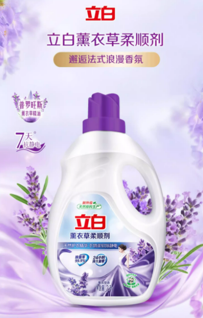 守护健康,从衣物除菌开始。立白薰衣草柔顺剂凭借99.9% 的高除菌率,在众多产品中脱颖而出。它能有效去除金黄色葡萄球菌、肺炎克雷伯菌和奥斯陆莫拉菌等常见致病菌,尤其适合梅雨季、回南天等潮湿环境,及家有宠物、小孩的家庭,为家庭健康撑起坚实的保护伞。无论是日常衣物,还是宝宝的小衣服,都能得到多方位的健康呵护。除了强大的除菌实力,立白薰衣草柔顺剂在衣物护理上同样表现卓越。它萃取天然棕榈油精华,让衣物柔软蓬松。其抗静电技术荣获中国发明专利,可带来7天长效抗静电保护,防衣物“贴腿”“吸附灰尘”。