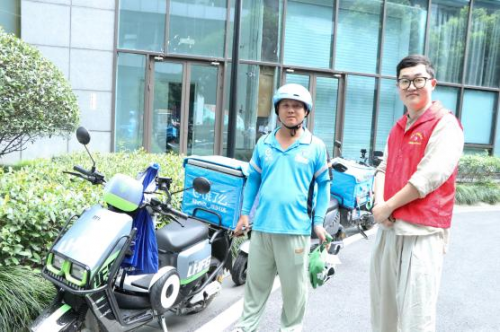 随着正午忙碌时段的过去,清凉饮品已基本分发完毕。党服工作人员继续为园区户外一线工作者及仍在奔忙的外卖小哥、快递小哥们分发精心准备的“夏日清凉礼包”。这份量身定制的礼包内含冰袖、便携凉茶等实用物资,精准匹配户外工作者的实际需求。清凉解渴的饮品,搭配上内含清凉喷雾、冰袖、驱蚊液等防暑降温用品的“清凉礼包”,构成了高温下一份最贴心、最实用的“防暑套装”。