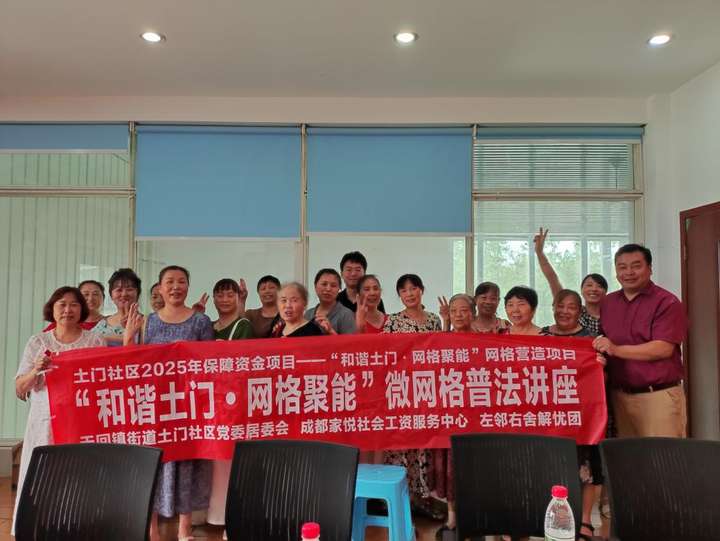为提升微网格员和居民骨干的法律素养与依法履职能力,强化社区治理的法治化基础,2025年7月24日上午,由金牛区天回街道土门社区主办、成都家悦社会工作服务中心承办的“和谐土门・网格聚能”微网格普法讲座,在土门社区党群服务中心二楼会议室顺利开展,吸引了社区微网格员和居民骨干共计25人参与。