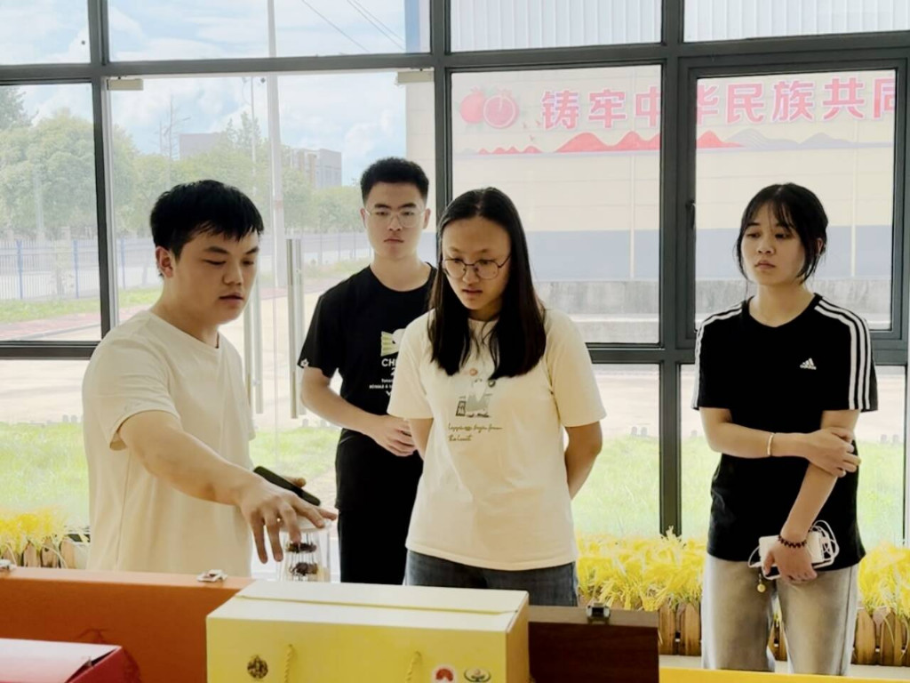 福中福罗汉果有限公司企业负责人曾德佳为团队成员介绍罗汉果产品