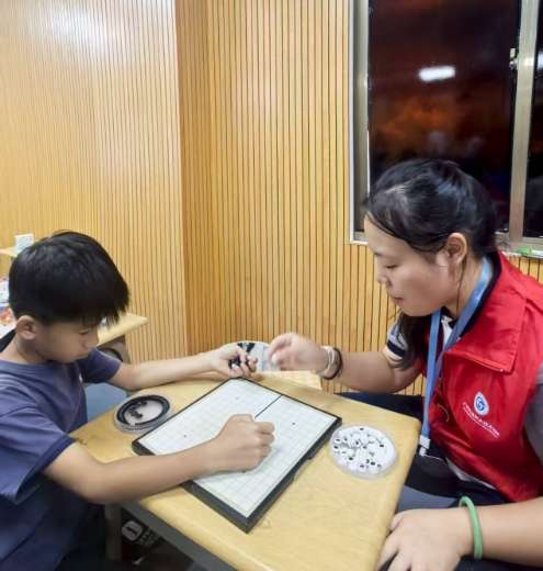 文体活动同样丰富多彩。棋类活动区里,象棋、跳棋、飞行棋的棋盘前坐满了小朋友,队员们 “一对一” 结对对弈。时而眉头紧锁思考策略,时而露出笑容收获喜悦,小朋友们在潜移默化中提升智力、学会协作。“以前不知道下棋有这么多学问,哥哥教我的‘马走日’我记住了!” 一名小朋友举着象棋兴奋地说。这些书本之外的 “财富”,正成为小朋友们成长路上的重要养分。