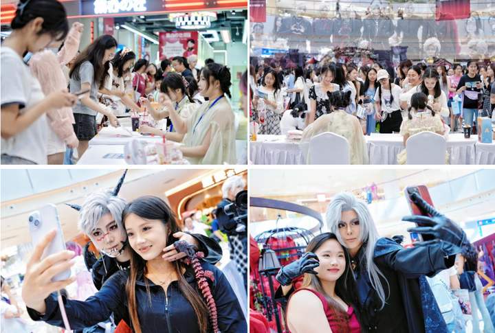 7月15日,西北区域太原吾悦广场联合头部漫展团队,邀请11位百万粉丝秦彻Coser,打造“次元破壁”主题漫展,次元爱好者如潮水般涌向广场,瞬间汇聚超千人。设置同人市集、打卡互动、Coser见面会、次元舞蹈等将现场氛围推至沸点。太原吾悦广场通过打造这场现象级青春仪式,以优质内容深度触达Z世代情感内核,兑现“情绪价值"营销的强势收割。