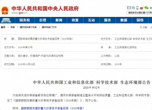 可迪尔有机废气筒式沸石转轮浓缩技术装备载入《国家鼓励发展的重大环保技术装备目录(2020年版)》