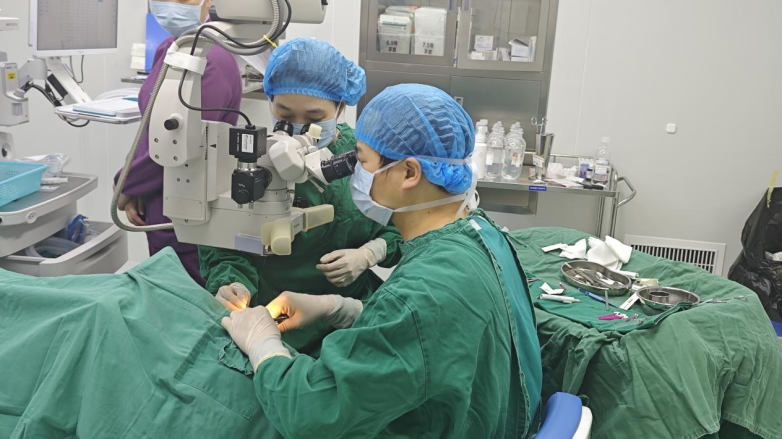 完善术前检查及相关准备工作后,余新平教授为小刘实施了右眼外直肌后徙 6mm,右眼内直肌缩短 5mm 的手术,手术过程十分顺利。术后,通过斜视矫正手术、术后验光配镜以及双眼视功能训练,小刘的眼位现已恢复正常,双眼二级、三级视功能也在逐步恢复中。